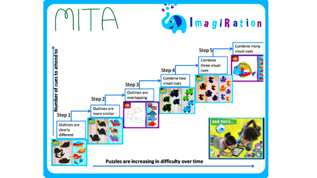 Through MITA’s systematic exercises, a child progresses and develops the ability to simultaneously attend to a greater number of features.